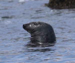 We came away with estimates that Common Tern outnumbered Arctic Tern by a 2 to 1 ratio. We counted at least 40 Atlantic Puffin on the water in close proximity to the boat, and a dozen or so more perched on the rock boulders along the island’s southeastern edge. Adult terns and puffins were seen carrying fish – the best indication that they are feeding young! Common eiders with recently fledged young, various gull species, Common Murre, Razorbill, and cormorants rounded out our bird sightings.